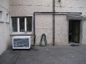 Die zugehörige externe Kältemaschine führt die Wärme ab.